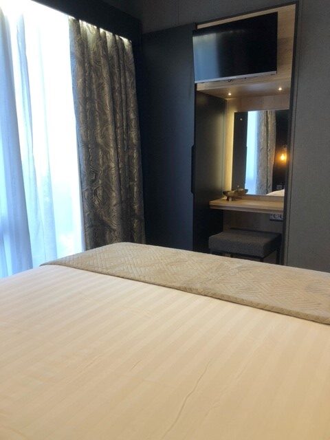 - opgedekt tweepersoons boxspring én tv in de slaapkamer