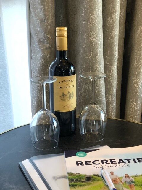 - fles wijn bij aankomst