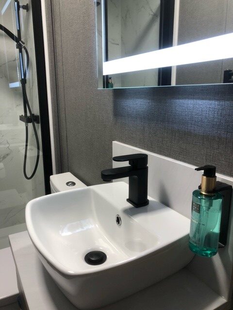 Ons sanitairgebouw beschikt over; 2 douches, 2 wastafel ruimtes, 2 toiletten, urinoir, afwasruimte, afvoerplaats voor toiletcassettes, wasmachine en droger.